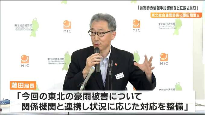 東北6県を管轄する東北総合通信局の新しい局長に藤田和重氏が着任し、「災害時の情報手段の確保などに取り組む」と抱負を述べました。