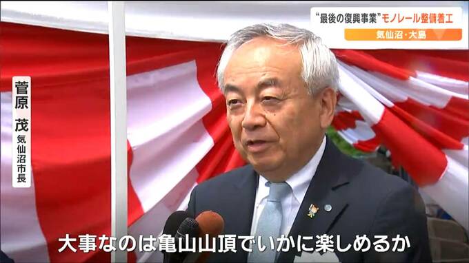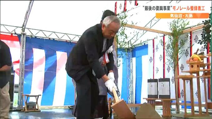 宮城県気仙沼市がハード面での「最後の復興事業」と位置づける大島・亀山へのモノレールの整備が始まりました。26日は起工式が行われ、市の関係者らが工事中の安全を祈願しました。