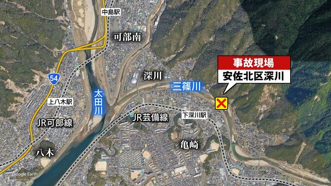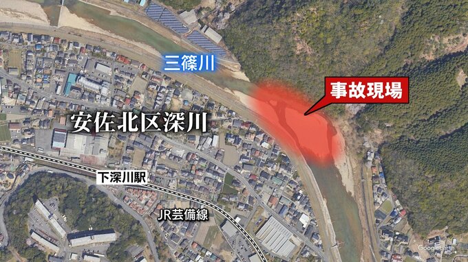 場所は広島市安佐北区になります。JR芸備線がありまして、太田川と三篠川が合流して、もう少し三篠川を上流に進んでいったあたりです。非常に川が蛇行している場所です。西日本豪雨のときにはこのあたりは水かさが増して災害があったような場所だったんですけれども、災害がないときは中州のような場所ができていたり、流れの緩やかな場所もあったりする。河川敷に出て涼むような方も中にはもちろんいらっしゃったかもしれないところです。