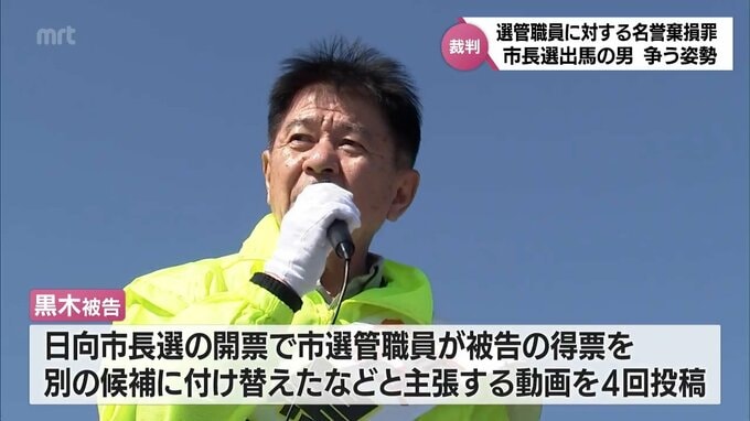 今年3月の日向市長選挙の開票を巡り、市選挙管理委員会の職員に対する名誉棄損の罪の問われている男の初公判が開かれました。市長選に出馬していた男は「名誉毀損にはあたらない」と争う姿勢を示しました。起訴さ…