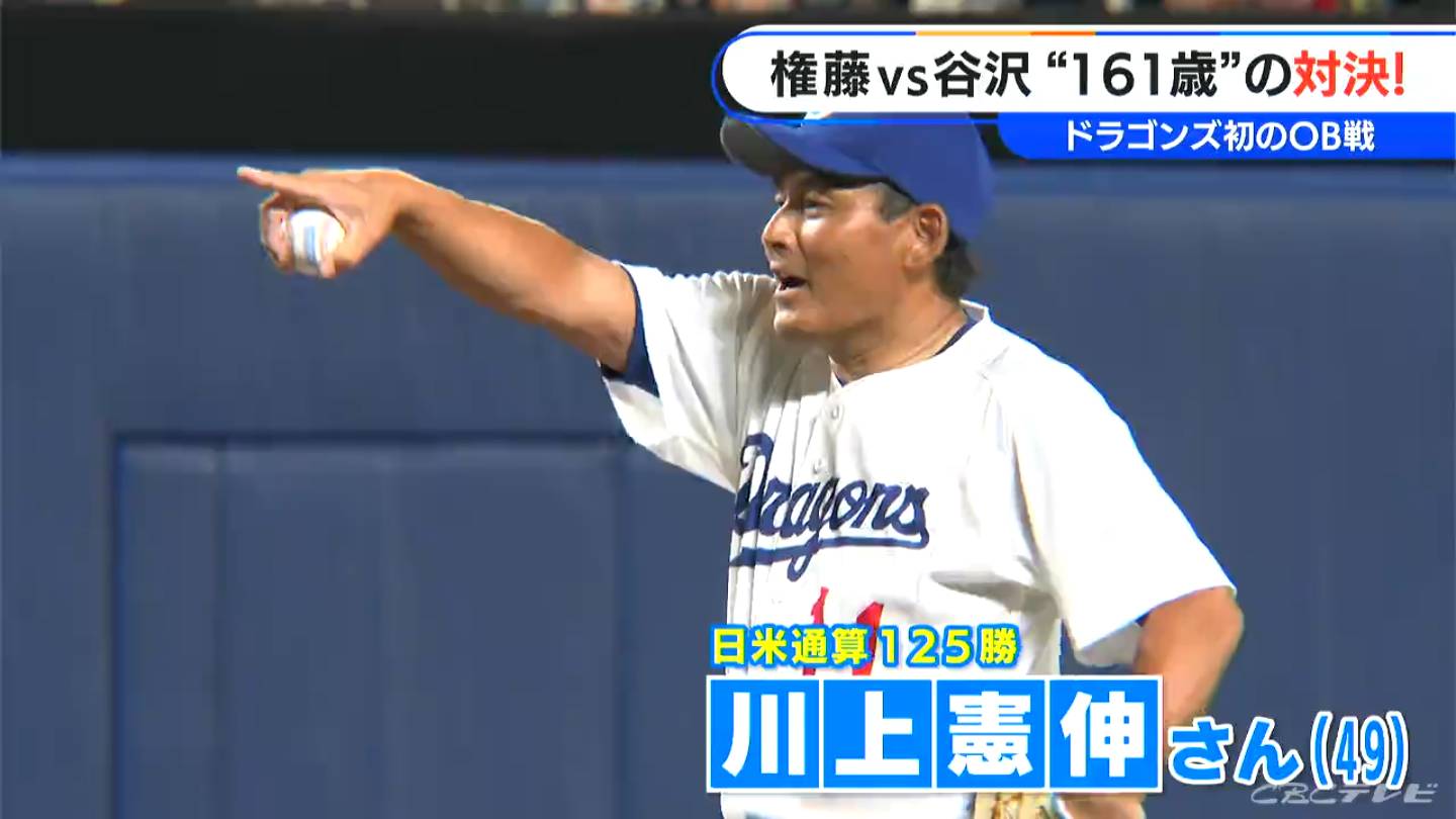 通算407セーブの日本記録を持つ岩瀬仁紀さん(49)は代打で出場。元エース・川上憲伸さん(49)との対決では、2人とも少年のような笑顔です。
