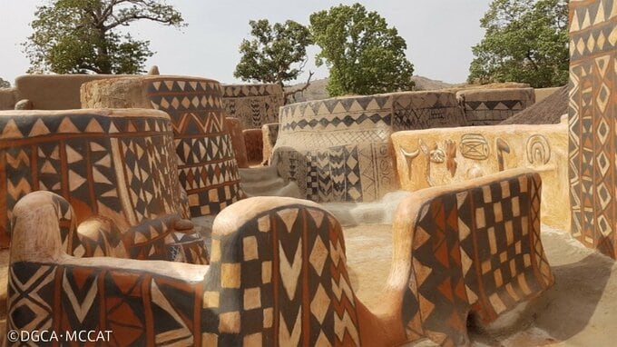 ブルキナファッソの文化遺産「ティエベレ王宮」。16世紀に建てられた土造りの建築物群で、当時の社会組織と文化的価値観を反映しているとされ、世界遺産に登録。