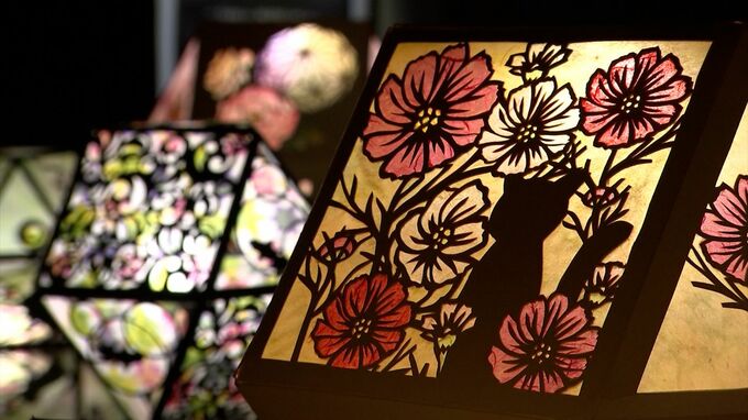 光と影が織りなす幻想的な灯りの展示が、岡山県倉敷市の阿智神社で行われています。繊細な模様が闇に浮かびます。倉敷市にある阿智神社に展示されている「希莉光あかり」は、お盆の時期に飾られていた切子灯籠をヒ…
