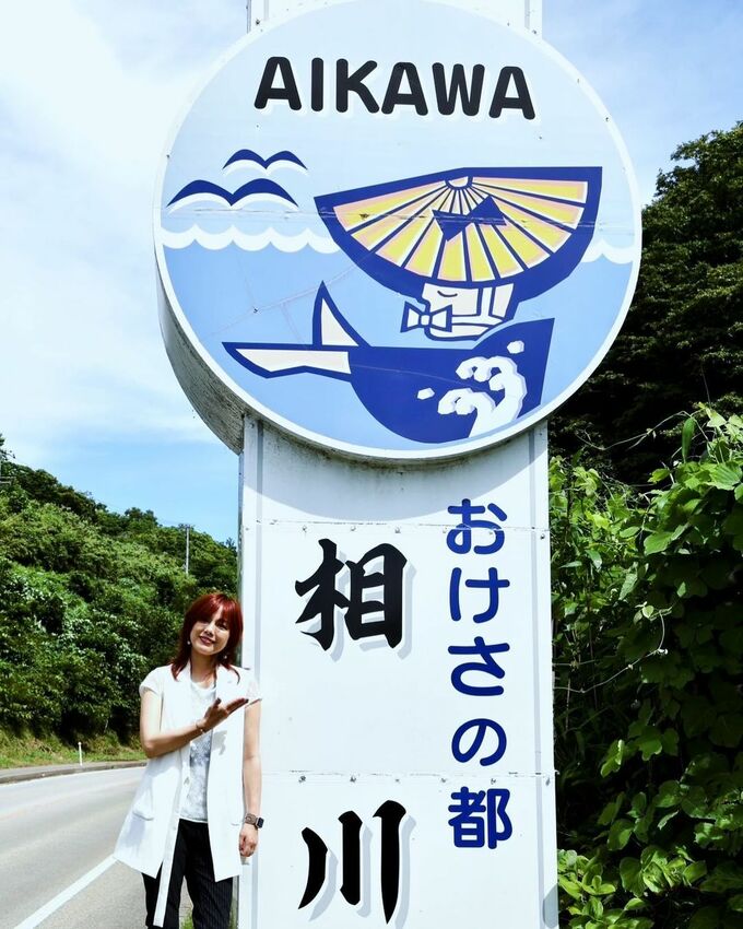 相川さんは「我らが新潟県佐渡市相川!!」と書き出し、「おけさの都 相川」と大書された観光看板の傍に立つ、かつての自身の写真を投稿しました。そして「長年の夢だった『佐渡島の金山』のユネスコ世界文化遺産登録決定だそうです」「嬉しすぎます」と報告。