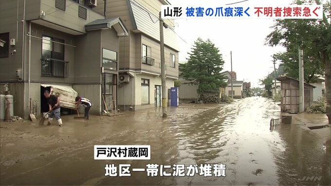 記録的な大雨で被害が広がった山形県では、行方不明者の捜索や住民の後片付け作業が続いています。最上川が氾濫し、地区全体が冠水した戸沢村蔵岡地区です。記者「戸沢村蔵岡地区は、足首まで泥で埋まってしまいま…