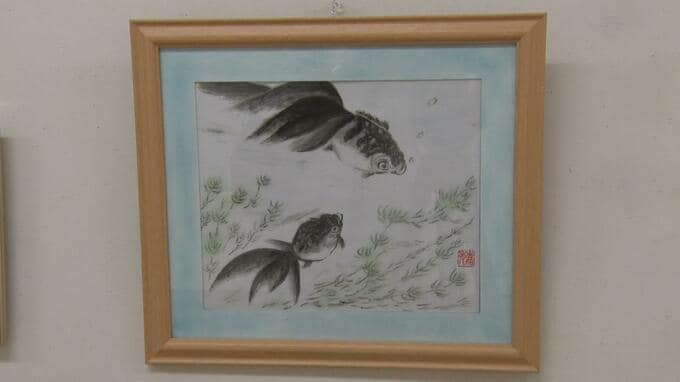 今回のテーマは「水の恵み」で、墨の濃淡を活かして夏の風景などが描かれていて訪れた人の目を惹きつけていました。
