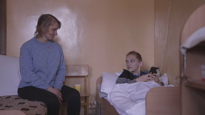 軍事施設とは無縁の子ども病院の窓ガラスは吹き飛ばされ、屋根には砲撃が直撃した跡が残っていた。大きな被害は防げたが、「子どもたち」と目立つように文字が書かれたこうした病院にも、ロシアによる攻撃は容赦なく加えられ続けた。