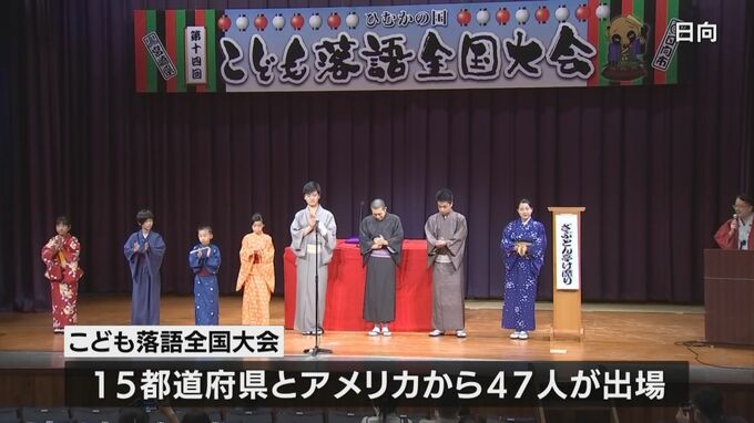 こども落語の日本一を決める全国大会の決勝が、日向市で開かれました。今年の「こども落語全国大会」には、15の都道府県とアメリカから47人が出場。28日は、予選を勝ち抜いた8人による決勝が行われ、小学生の部と…