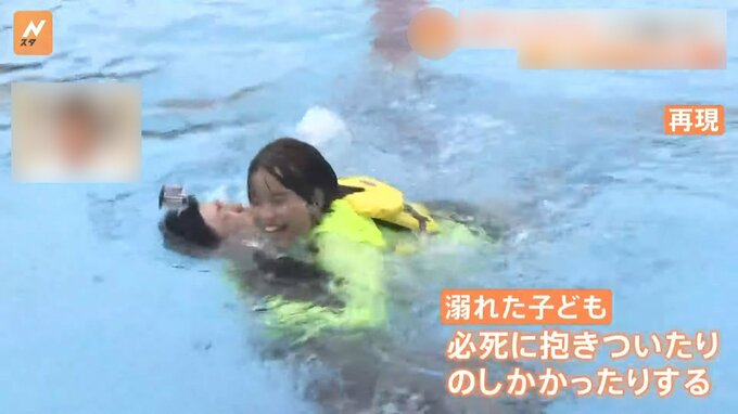 実際にNスタのディレクターが、溺れている子どもを救助する体験をしてみました。