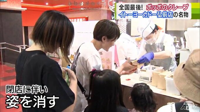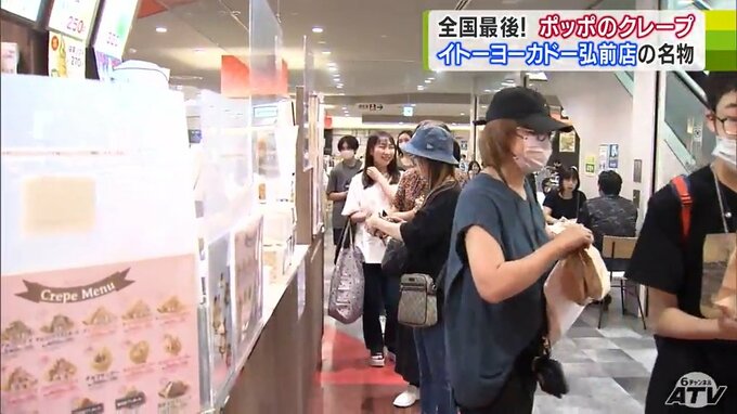 ポッポのクレープはかつて、北海道、東北を中心に10店舗以上で販売されていましたが、時代が進むにつれて減っていき、今は弘前だけです(「青森」は2024年7月28日に閉店・「弘前」は9月29日にイトーヨーカドー弘前店と共に閉店します)。この店舗の閉店に伴い、クレープも販売は終わることになっていて、いまは名残を惜しむ人が多く訪れ、連日賑わっています。