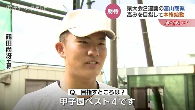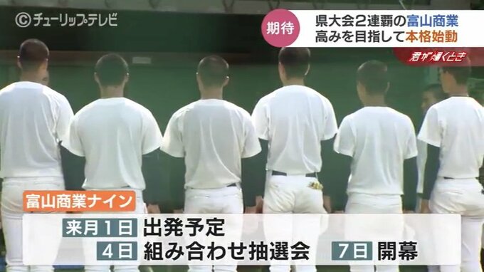 去年は甲子園出場を果たしたものの初戦敗退という悔しい経験をした富山商業。先輩の思いも背負い、まずは初戦突破、そして県勢がまだ見ぬ高みを目指し気を引き締めます。