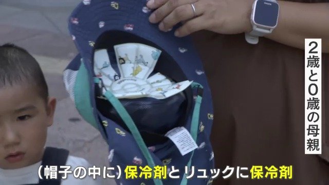 「(帽子の中に)保冷剤とリュックに保冷剤。(赤ちゃんは)扇風機シートと、枕に保冷剤、保冷剤を脇に入れて、それでようやく(家を)出られます」