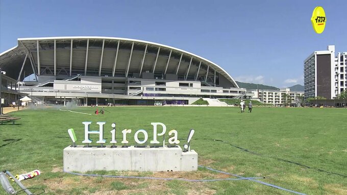 エディオンピースウイング広島周辺に整備されている広場が、オープンするのを前に報道陣に公開されました。新しくオープンするのは、スタジアムを含む「ひろしまスタジアムパーク」のうち、東西に整備されている「…