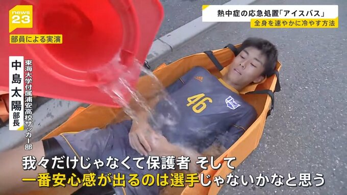 夏の部活動 応急処置に“アイスバス”=即席の氷風呂