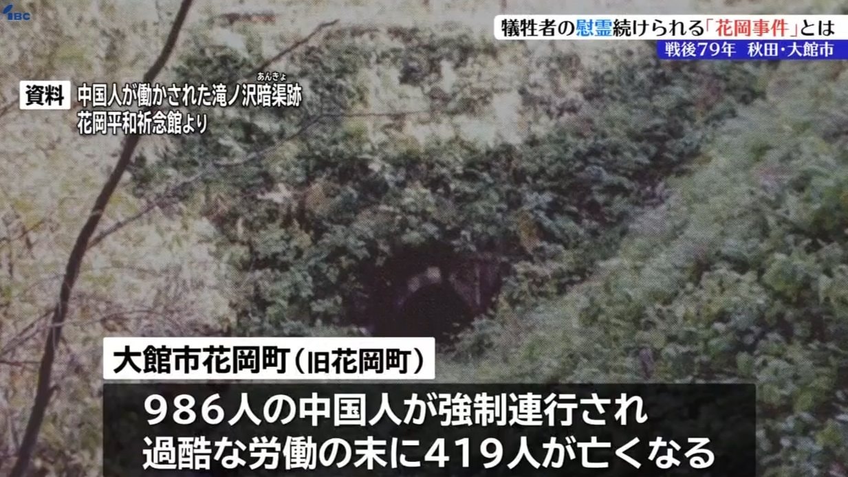 秋田県の北部に位置する大館市。かつては鉱山の街として栄えた花岡地区は、太平洋戦争中に986人の中国人が強制連行され、鉱山や工事現場での過酷な労働の末に419人が亡くなりました。