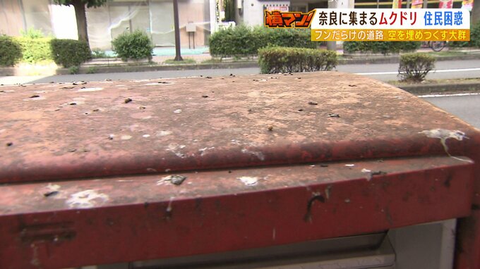 「郵便ポストの上にもたくさんの鳥のフンが落ちています」