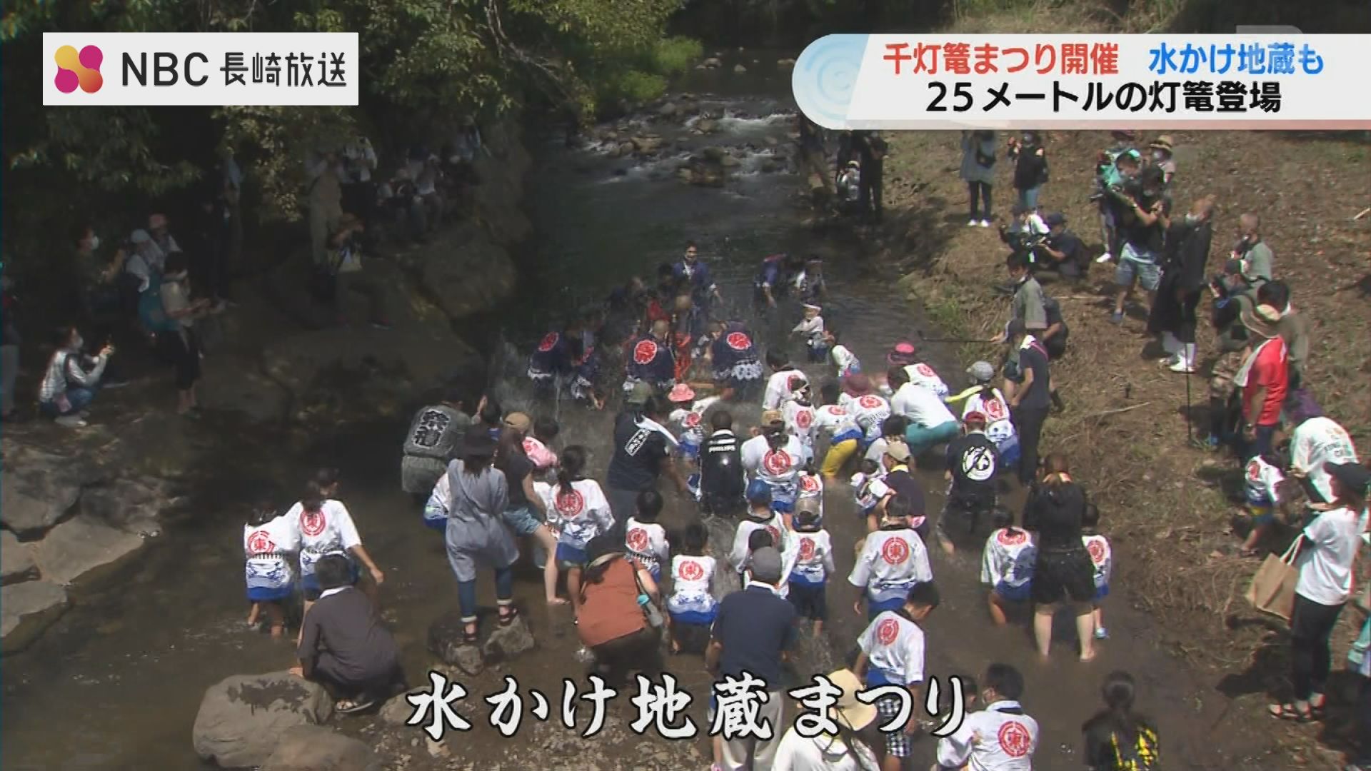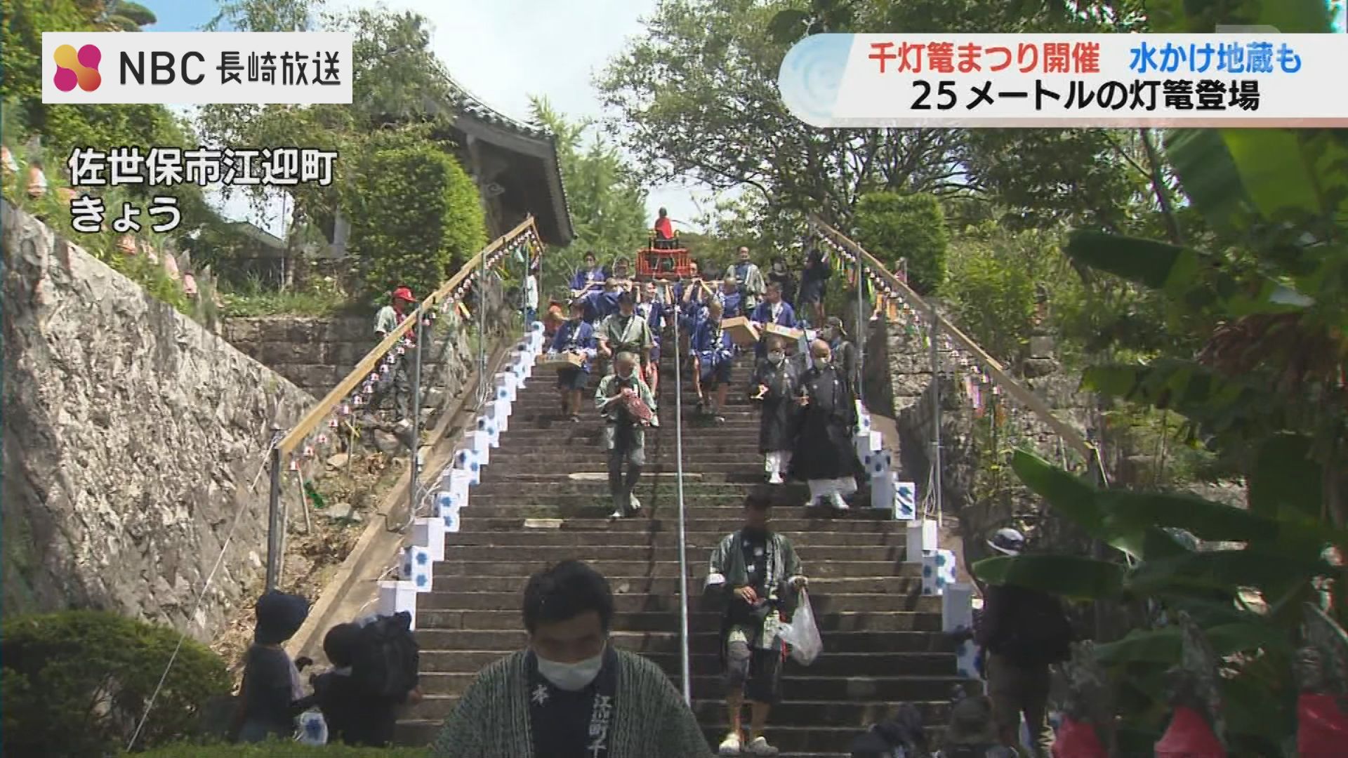 佐世保市江迎町の伝統行事「千灯籠(せんとうろう)まつり」が、3年ぶりに行われ初日の23日は「水かけ地蔵まつり」で町内が盛り上がりました。