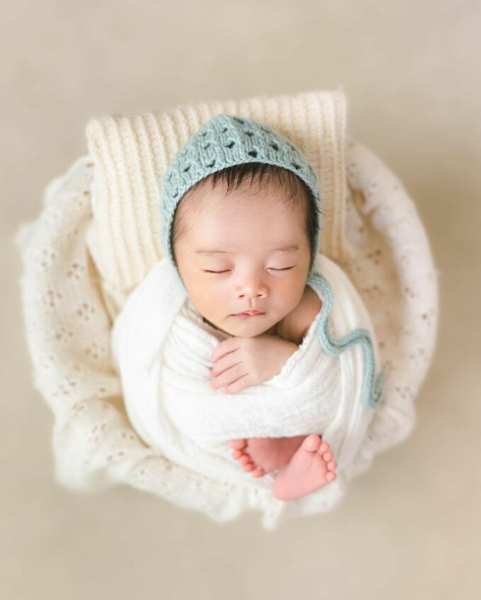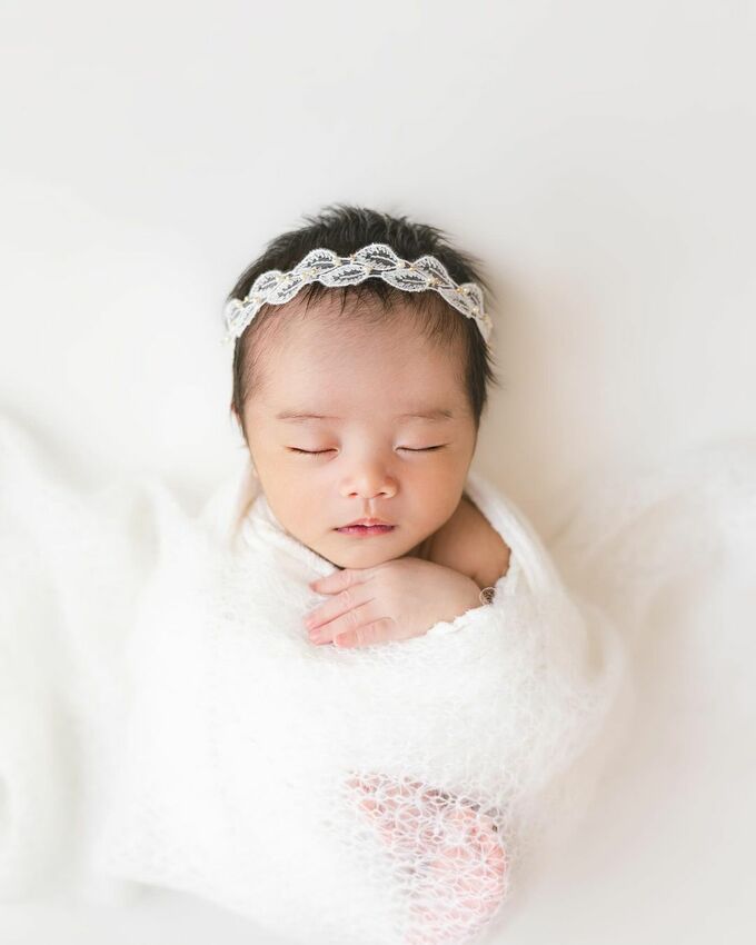井上さんは「先日、長男のニューボーンフォトを撮りました」と報告。1枚目に、純白のフリルのヘアバンドに純白のおくるみをまとった長男の姿を投稿。2枚目の写真ではおくるみから両足が出てきていて、かわいらしさと繊細さもありつつ元気がよさそうな雰囲気がうかがえます。