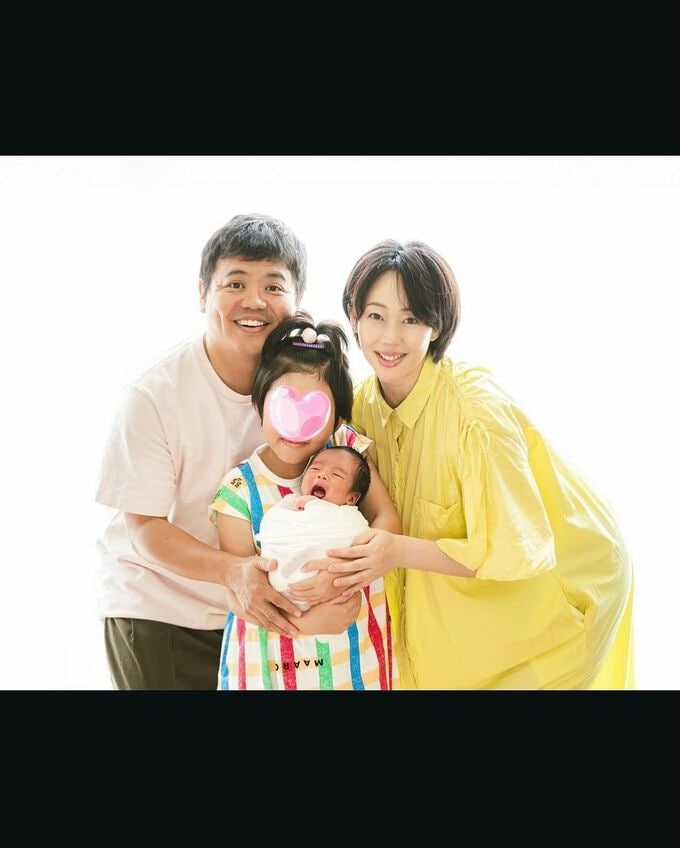 井上さんは「この日に限ってパッチリ起きてた息子くん」と慌てながらも「途中から寝てくれたのでなんとか撮れました!」と安堵。さらに家族写真となったときに「まさかの息子くんお目覚め」として、3枚目の写真では、井上さん・夫で映画監督の飯塚健さん・長女の3人で長男を囲んだ中で、彼が口を大きく開けて泣いている様子を投稿しています。