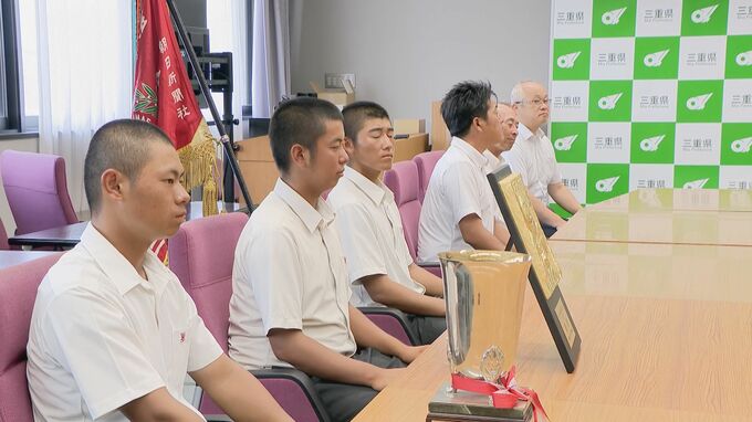 三重県大会を制した県立菰野高校の選手らは、決勝から一夜明けた30日に三重県庁を訪問し、一見勝之知事に16年ぶり3回目となる甲子園出場を報告しました。