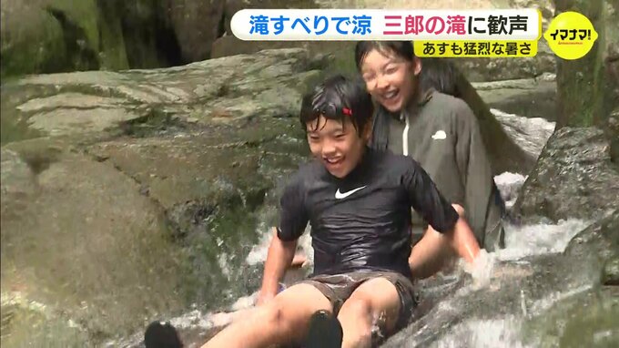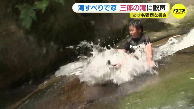 広島県府中市にある天然のすべり台には、涼しさを求めて子どもたちが集まっていました。