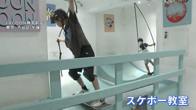 東京・渋谷にあるスケボー教室「LAGOON神宮前店」では、夏休みということもあり、多くの子供たちが練習していました。