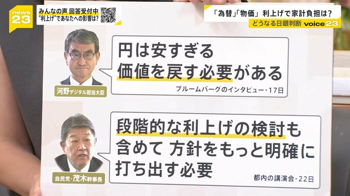 その利上げが行われるのか、ますます注目されている背景には、7月に入って河野デジタル担当大臣や自民党の茂木幹事長が日銀に利上げを求める発言があります。