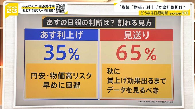 一方「31日利上げ」側としては、円安が進めば物価高がずっと続いてしまいます。経済にとってリスクなので、早めに回避するために利上げに踏み切るとの見方も出ています。こちらの場合はサプライズになるかもしれません。