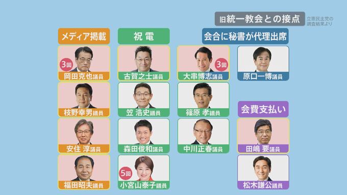 立憲民主党は、所属議員と旧統一教会との接点を調査した結果を発表しました。