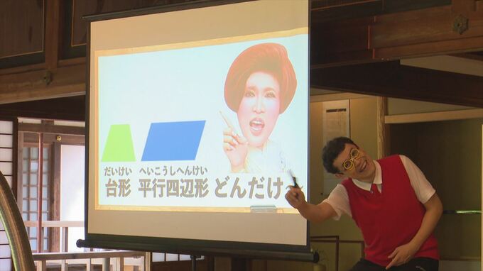 お笑い芸人と数学教師の二刀流で活動するタレントによるユーモアたっぷりの「お笑い算数教室」が山梨県甲州市で開かれました。