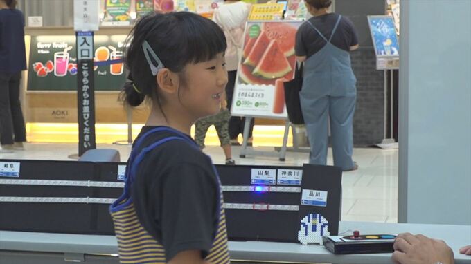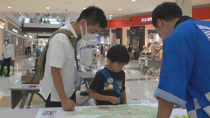 このほか、来年の大阪・関西万博で飛行が予定されている「空飛ぶクルマ」のコーナも設けられ、買い物客が県内で望ましい離着陸場にシールを貼っていました。