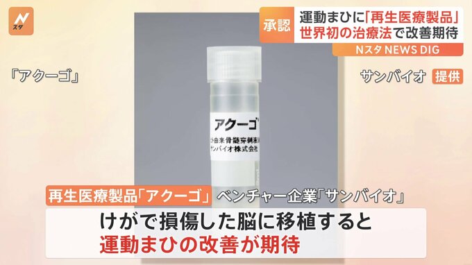 事故などで脳を損傷したことによる運動まひの改善が期待される世界で初めての再生医療による治療方法が、条件付きで厚生労働省に承認されました。ベンチャー企業「サンバイオ」の再生医療製品「アクーゴ」は、健康…