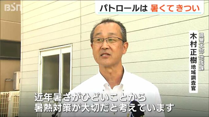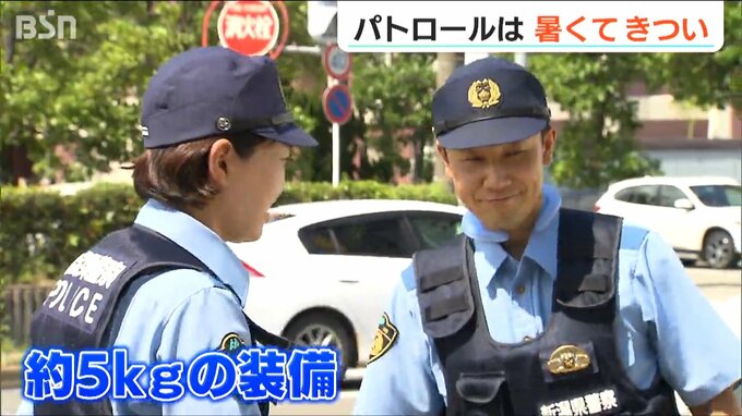 パトロールする警察官は、鉄板入りのチョッキなど、およそ5kgの装備を身に着けていて、夏場は特に体温が上がるばかりか、体力も激しく消耗しているのです。