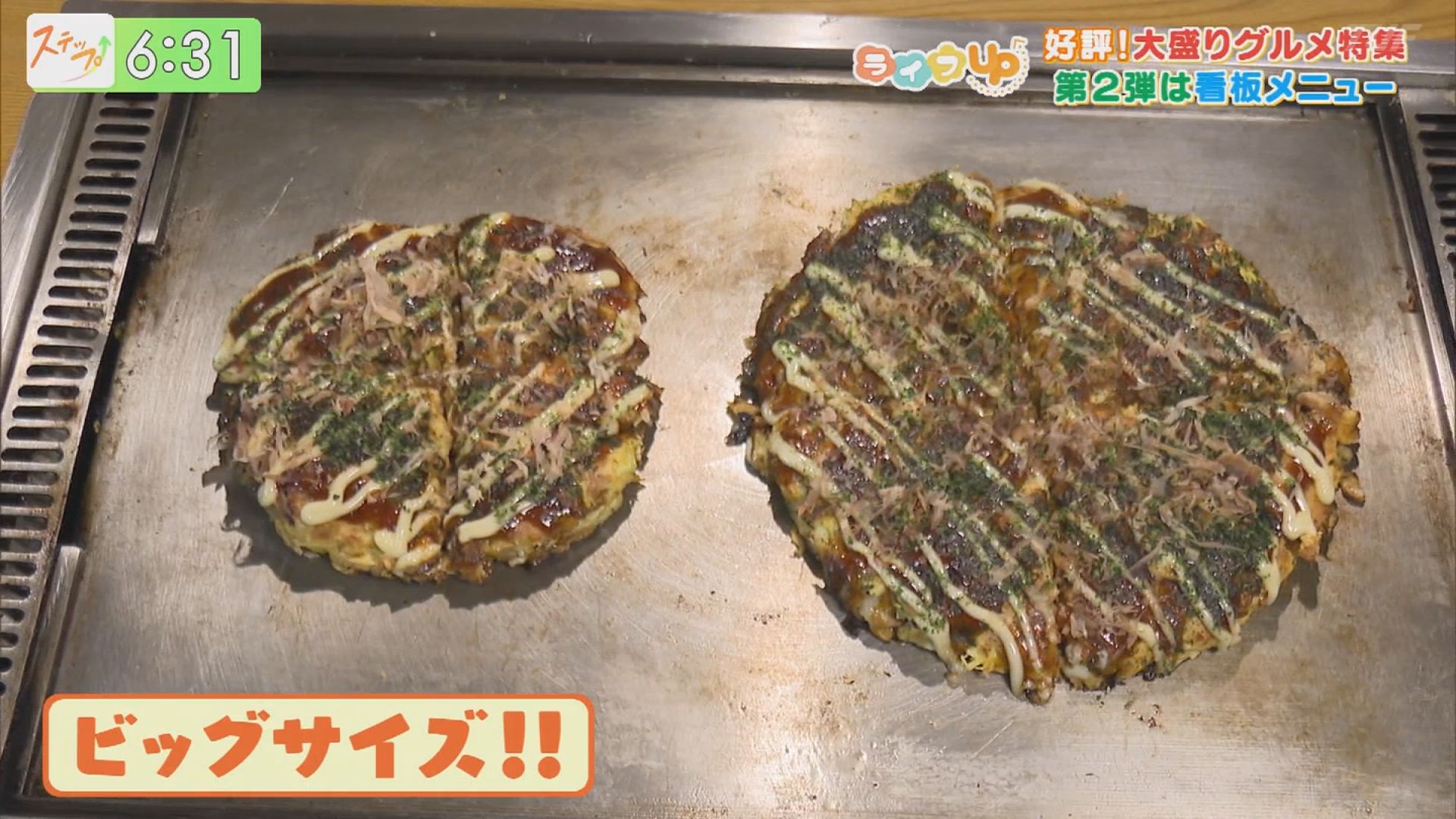 続いてはこちらのお店。会津坂下町にある『お好み焼家 ぐるめ』。通常メニューもボリュームたっぷりなこのお店ですが、それ以上にボリュームたっぷりなお好み焼きがあるんです。