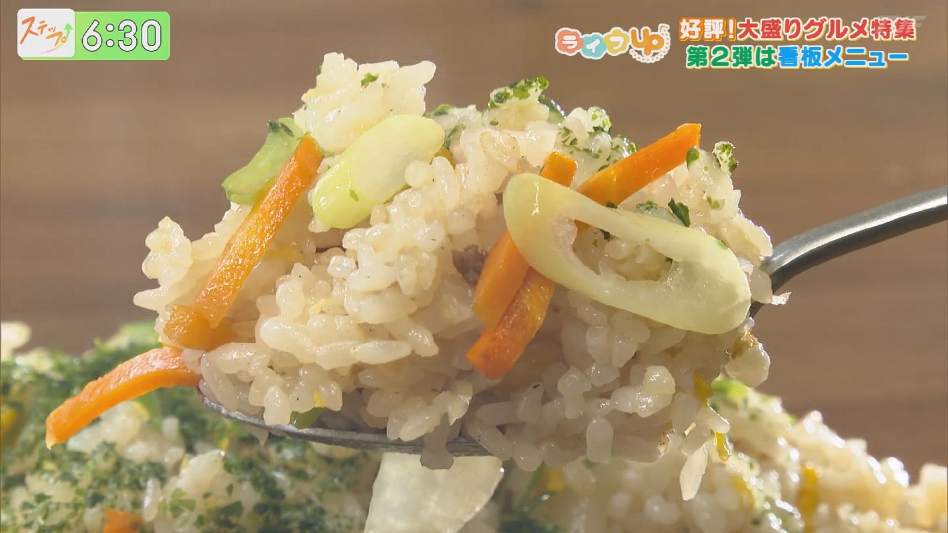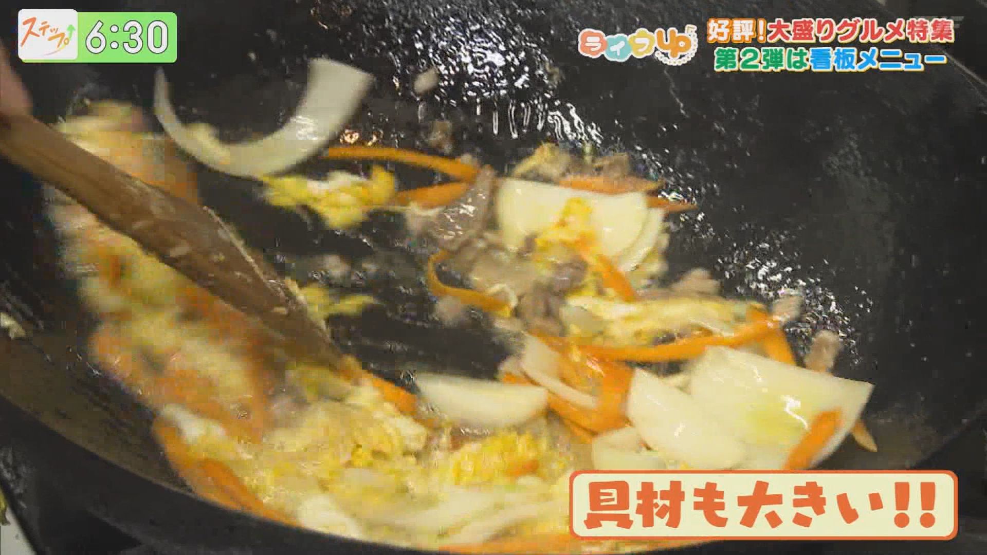 ここで真打の登場!なんとその量、およそ2合半!味付けしながら手早く炒めていきます。
