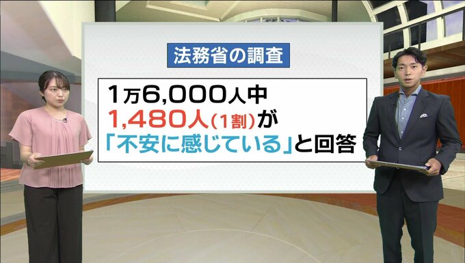法務省は、5月の事件を受け全国の保護司を対象に聞き取り調査を行っていて、このうち保護観察を担当しているおよそ1万6000人分の調査結果を7月26日に公表しました。1割の1480人が「不安を感じている」と回答していました。この中で「自宅での面接が不安」「家族や周囲から反対を示された」といった声がありましたが、不安を感じる人は1割と多くはなく、実際今回取材に応じていただいた2人からもこんな声が聞かれました。