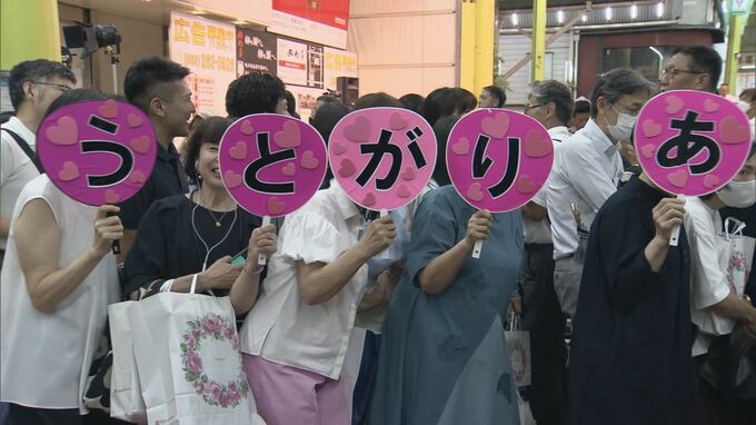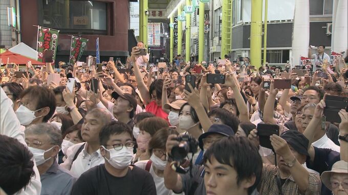 閉店時刻の午後7時を越えると…最後の瞬間を見届けようと人だかりが。