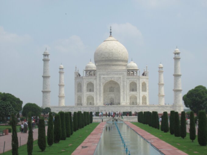 ただしフマユーン廟は赤い砂岩、タージ・マハルは白の大理石を基調に作られているので、「赤と白」の鮮やかな対比があります。