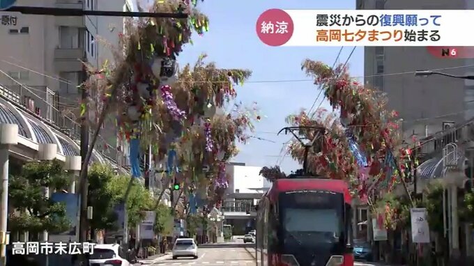 高岡の夏の風物詩、恒例の高岡七夕まつりが1日開幕し、高岡駅前の電車通りには高さ12メートルの七夕が12本並び、色とりどりの短冊が結ばれています。