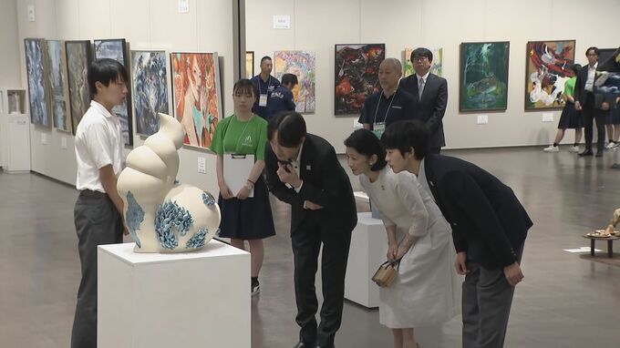 岐阜県を訪問中の秋篠宮ご夫妻と悠仁さまは「全国高等学校総合文化祭」に出品された美術や工芸作品をご覧になりました。