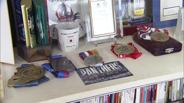 リビングには、これまでに息子が獲得したメダルなどがずらり…