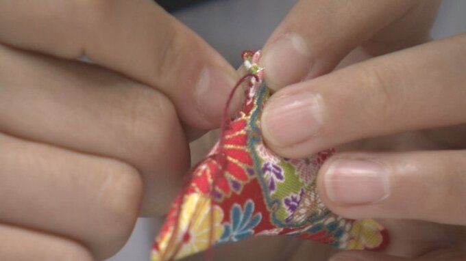 中学生は「家内安全」や「無病息災」などを祈願し小正月飾りとして作られる村伝統のお守り「ひいち」をかたどったキーホルダーを一つ一つ手作り。