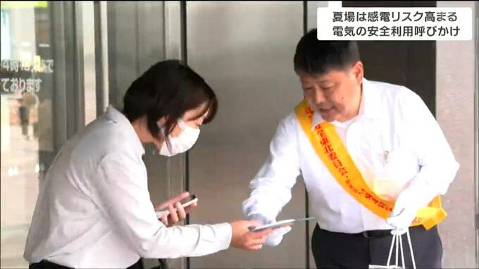 夏場に増える傾向がある感電事故を防ごうと、電気の安全な利用を呼びかける街頭キャンペーンがJR仙台駅前で行われました。
