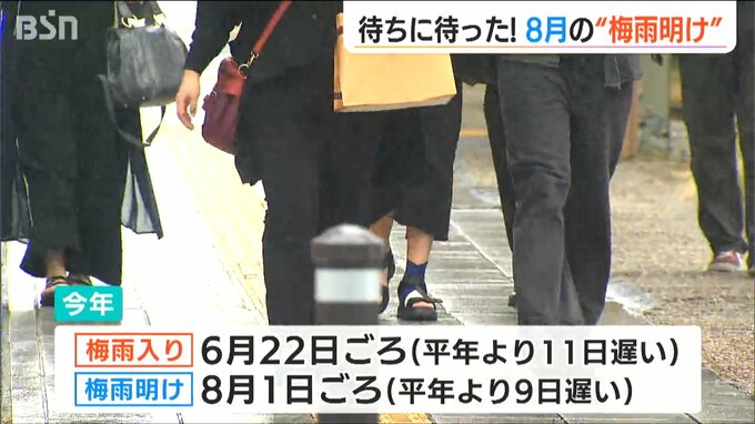 今年の梅雨入りは平年より11日遅い6月22日ごろでした。梅雨明けは平年より9日遅いので平年より2日短い梅雨だったと言えそうです。
