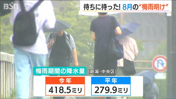 ただ、梅雨の期間中、新潟市中央区で降った雨の量は418.5ミリ。平年の降水量の1.5倍でした。