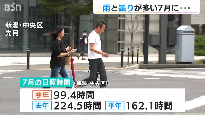 また、曇り空の日が多かったのも今年7月の特徴で1か月間の日照時間はわずか99時間…。去年、そして平年の半分以下となりました。
