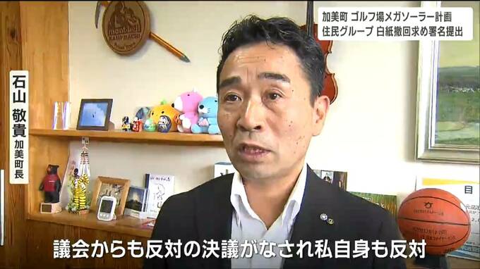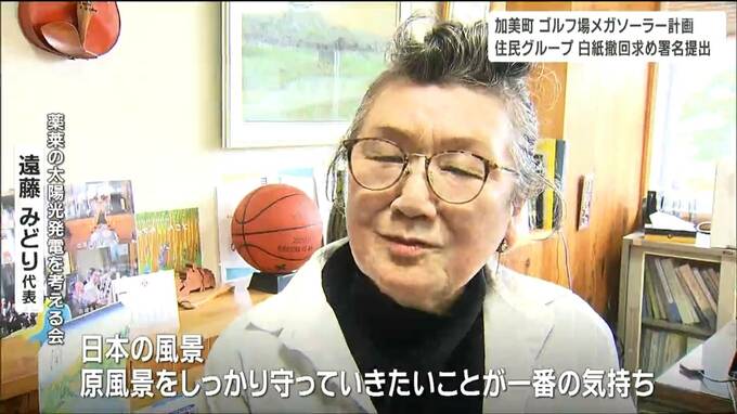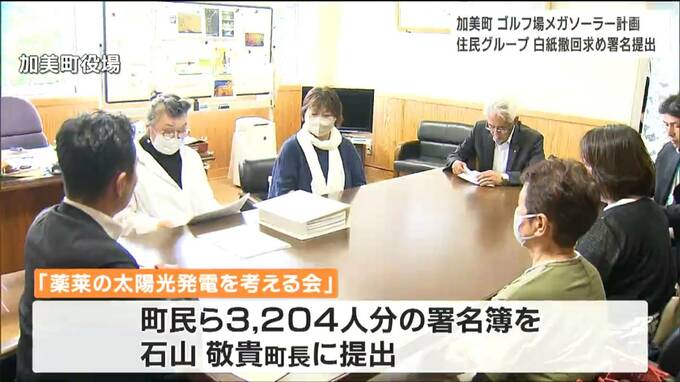 宮城県加美町のゴルフ場の土地が外資系企業に転売されメガソーラーを整備する計画が持ち上がっている問題で、地元の住民グループが1日、計画の白紙撤回を求める署名簿を町に提出しました。
