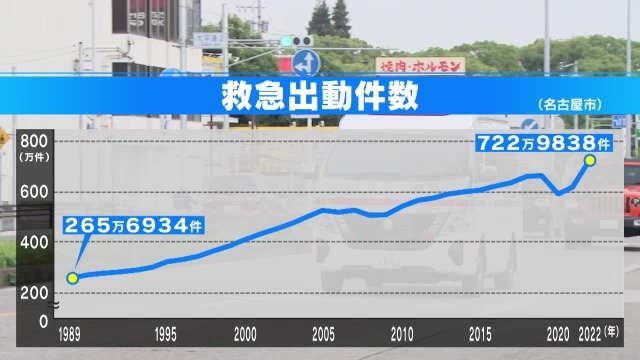 名古屋市内の1年間の救急出動件数は、右肩上がりで増加中。特に去年7月は月間1万5000件を超え、過去最多となりました。