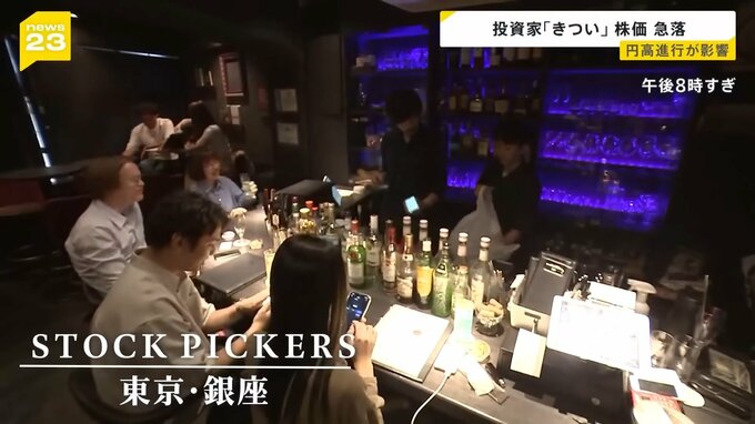 1ドル=148円台半ばまで急速に進んだ円高。その影響で、8月1日の日経平均株価は一時1300円以上値下がりする、今年最大の下げ幅となる場面もありました。都内にある投資家バーでは、投資家から困惑の声があがっています。