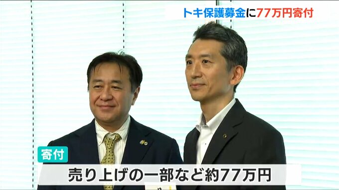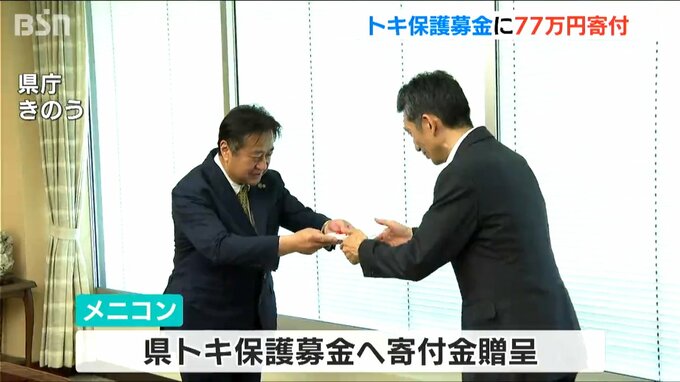 トキの保護に繋げてほしいとコンタクトレンズメーカーが売り上げの一部を県に寄付しました。